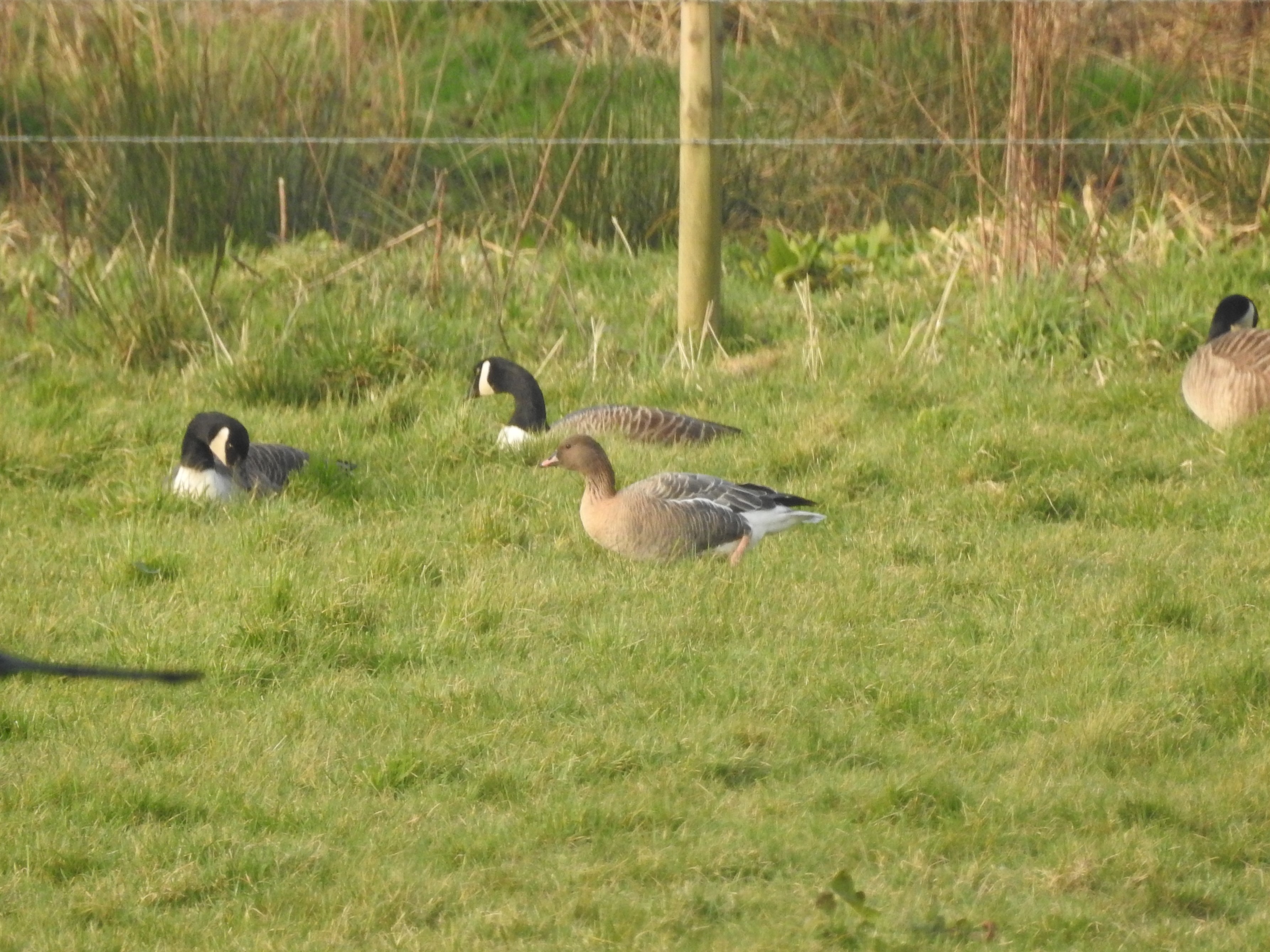 A Pink-footed Goose was with 180 Canada Geese at Teigngrace this evening, a great find by Tony Blunden. Presumably the bird from Exminster Marshes.