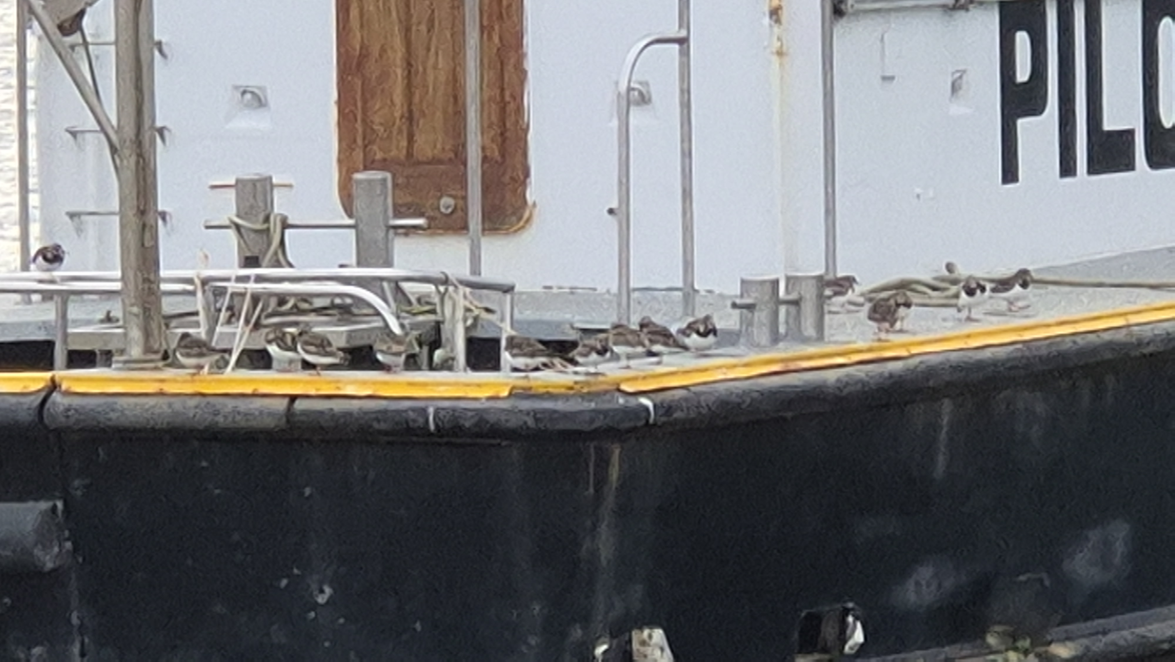 It might be approaching the end of May but some of the Teignmouth Turnstones appear to be in no rush to reach their Arctic or Scandinavian breeding grounds. Or, the 15 birds present off the Back Beach this afternoon comprise passage birds that don't form part of the usual wintering population.